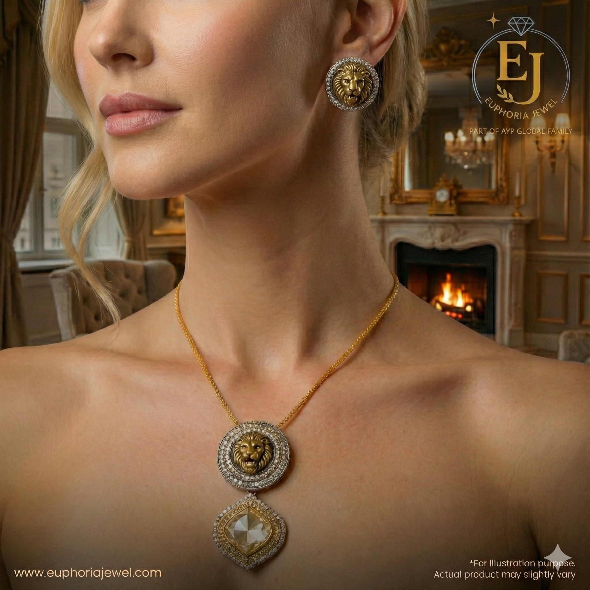 Matching lion-themed earrings complete this powerful fusion of heritage artistry and contemporary fashion—perfect for statement-makers, festive wear, and unforgettable style moments.